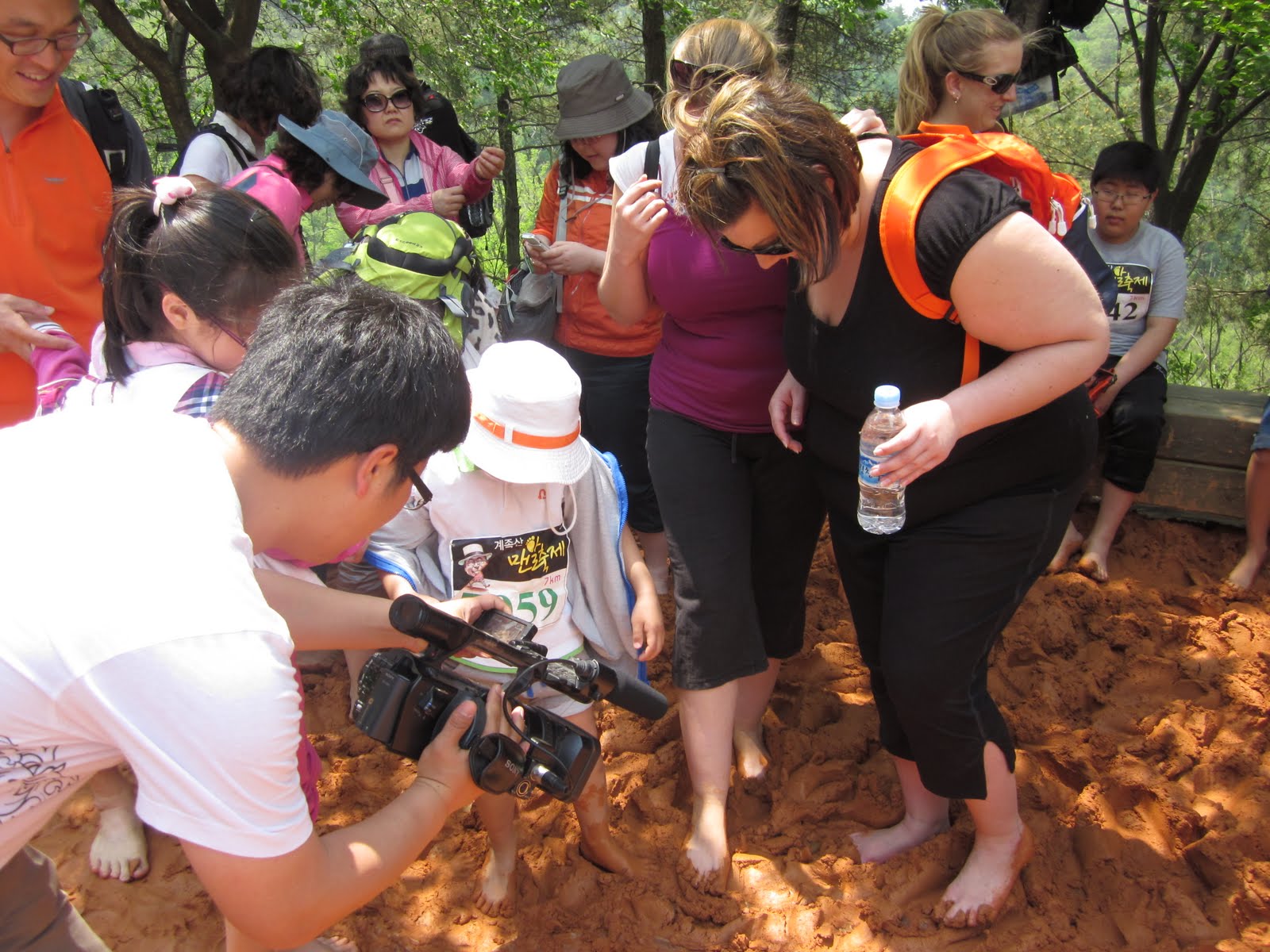 So we got ready for the marathon and left the apartment about 7:45am. We stopped at the mini mart for some snacks (pringles, snickers, water - the essentials) and then headed off to take the subway to the other train station, which was the meeting point for the buses and all the other people who were taking the free bus to the marathon on Mt. Gyejok. There were three buses coming that morning, one at 8:10am, 8:20am, and 8:30am. Amy and I arrived about 8:25am and met Maggie, Amy's friend, along with about 40 other people who were waiting for the free bus, as well.